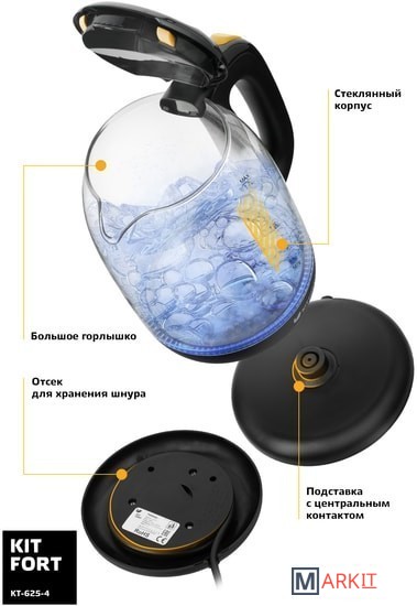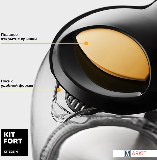 Markit » Электрочайники и термопоты » Электрический чайник Kitfort KT-625-4 (черный/желтый)