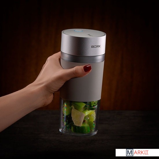 Управление осуществляется одной кнопкой. Цикл измельчения длится 40 секунд. Без подзарядки блендер работает до 10 раз, после чего восстановить заряд аккумулятора можно за 2 часа при подключении по USB.